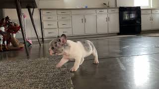 Her sire Jackson is a handsome blue and tan merle with a personable nature and beautiful build. Her mother Lily is a gorgeous fawn colored Frenchie with a sweet personality and gentle nature. Both parents are genetic tested.