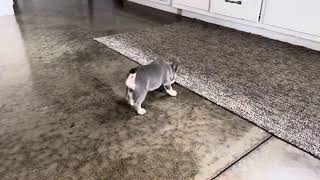 His sire Jackson is a handsome blue and tan merle with a personable nature and beautiful build. His mother Lacy is a beautiful blue Frenchie with a sweet personality and gentle nature. Both parents are genetic tested.