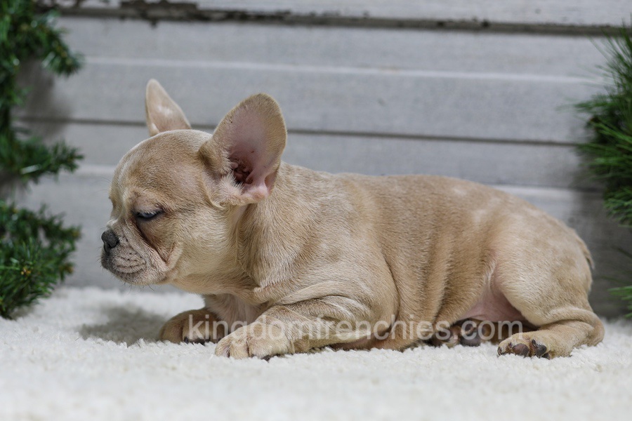 His sire Memphis is a beautiful caramel colored fawn merle French Bulldog with a personable nature and beautiful build. His mother Coco is a gorgeous blue colored Frenchie with a friendly personality and gentle nature.