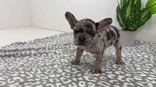 The sire Chico is a handsome lilac and tan merle Frenchie with a loveable nature. He is genetically tested. The mother Harmony is a loveable merle Frenchie with a great personality. Both parents are here on the premises. Puppy was raised with care in our loving family environment.