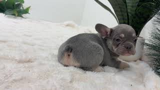 Her sire Bo is a beautiful fawn color with a gorgeous coat, and friendly personality and is genetic tested. Her mother Bria is a lovely lilac merle Frenchie with a loving personality. Both parents are here on the premises.