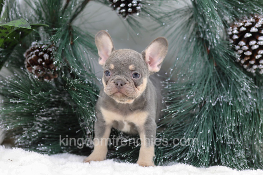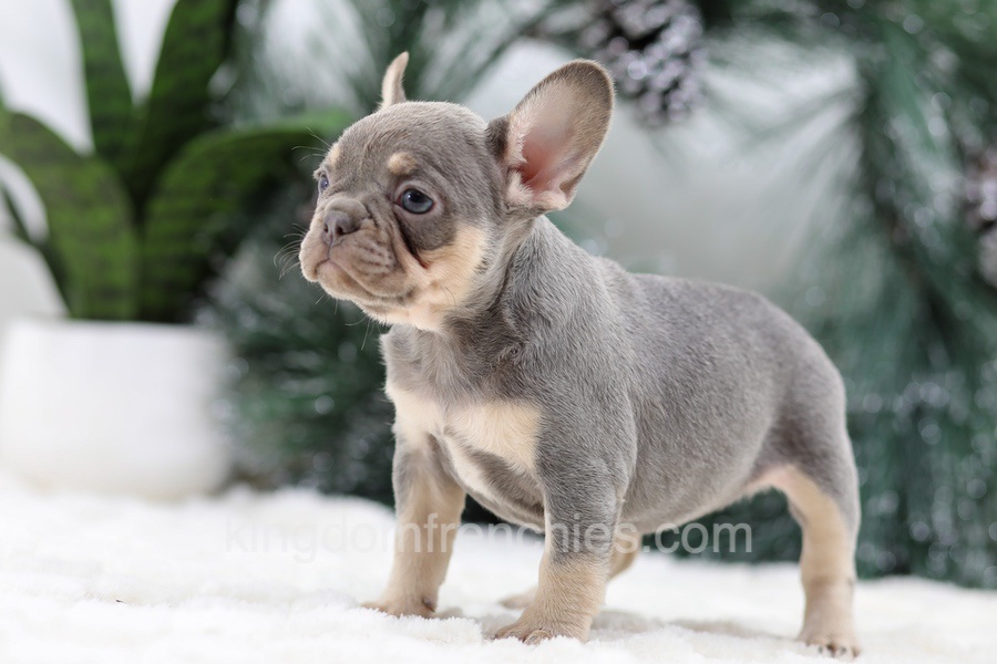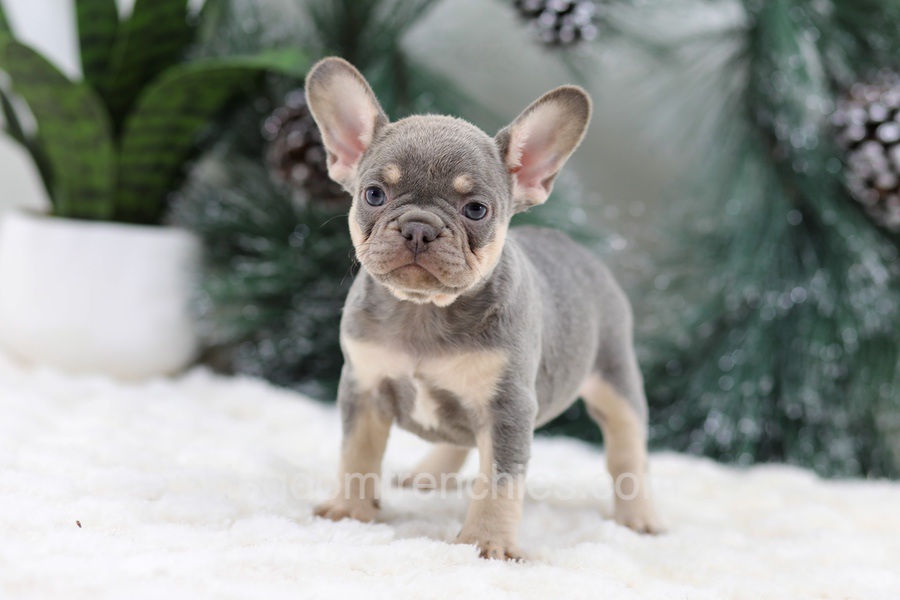 Her sire Bo is a beautiful fawn color with a gorgeous coat, and friendly personality and is genetic tested. Her mother Bria is a lovely lilac merle Frenchie with a loving personality. Both parents are here on the premises.