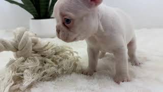 Introducing Grace, the platinum French Bulldog who sparkles without even trying. With her shimmering silvery coat, dainty little paws, and eyes full of sweetness, Grace is elegance wrapped in a squishy, snuggly package. She’s got the grace of a ballerina (with the occasional bulldog tumble), and a personality that’s equal parts gentle cuddlebug and curious explorer. Whether she’s tiptoeing through the house like she’s on a secret mission or nestled in a blanket like the queen she is, Grace brings a calm, cozy kind of magic wherever she goes. She’s soft, she’s sweet, and she’ll melt your heart with a single head tilt. Simply put—Grace is pure platinum perfection.