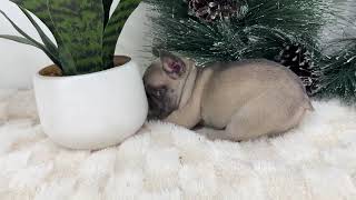 Her sire Chico is a handsome lilac and tan merle Frenchie with a personable nature and is genetic tested. Her mother Harlo is a beautiful fawn merle color with a lovable personality.