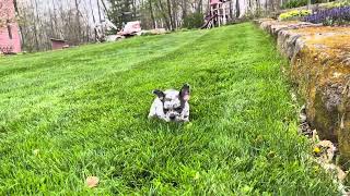 Her sire Raleigh is a handsome Blue Merle with a gorgeous coat and a personable nature. He is genetically tested. Her mother Fiona is a lovely chocolate colored Frenchie with a gentle personality. Both parents are here on the premises.