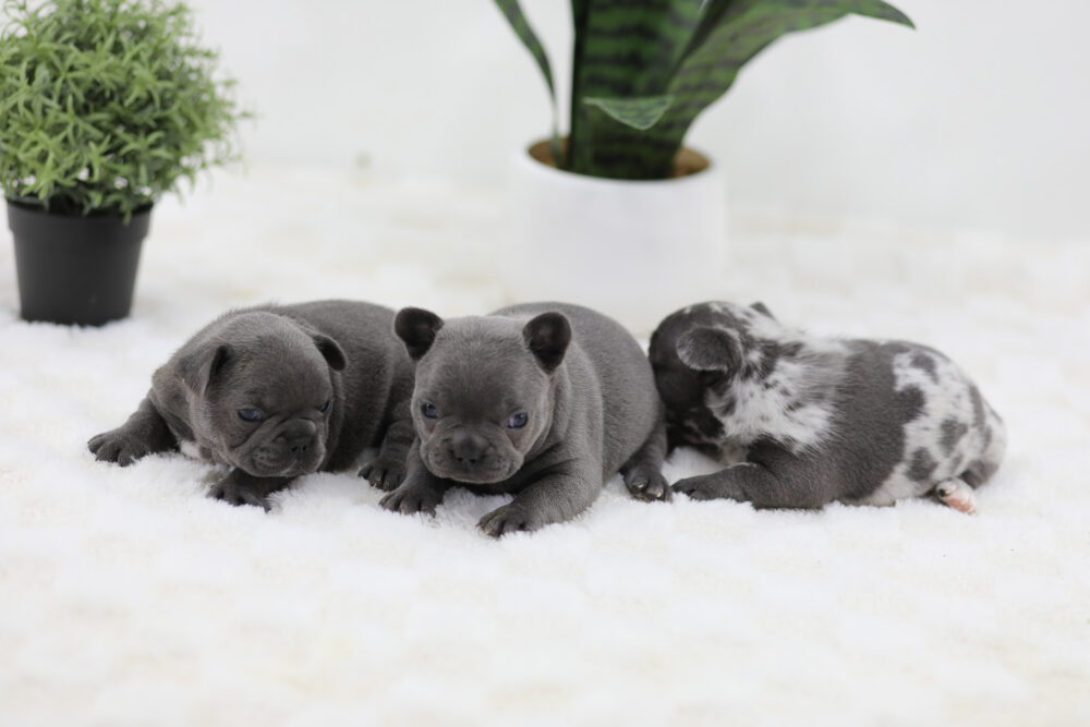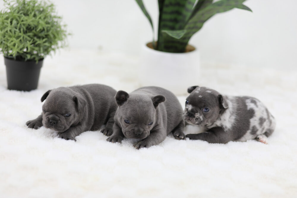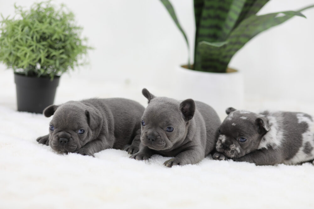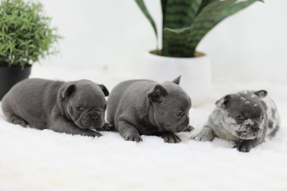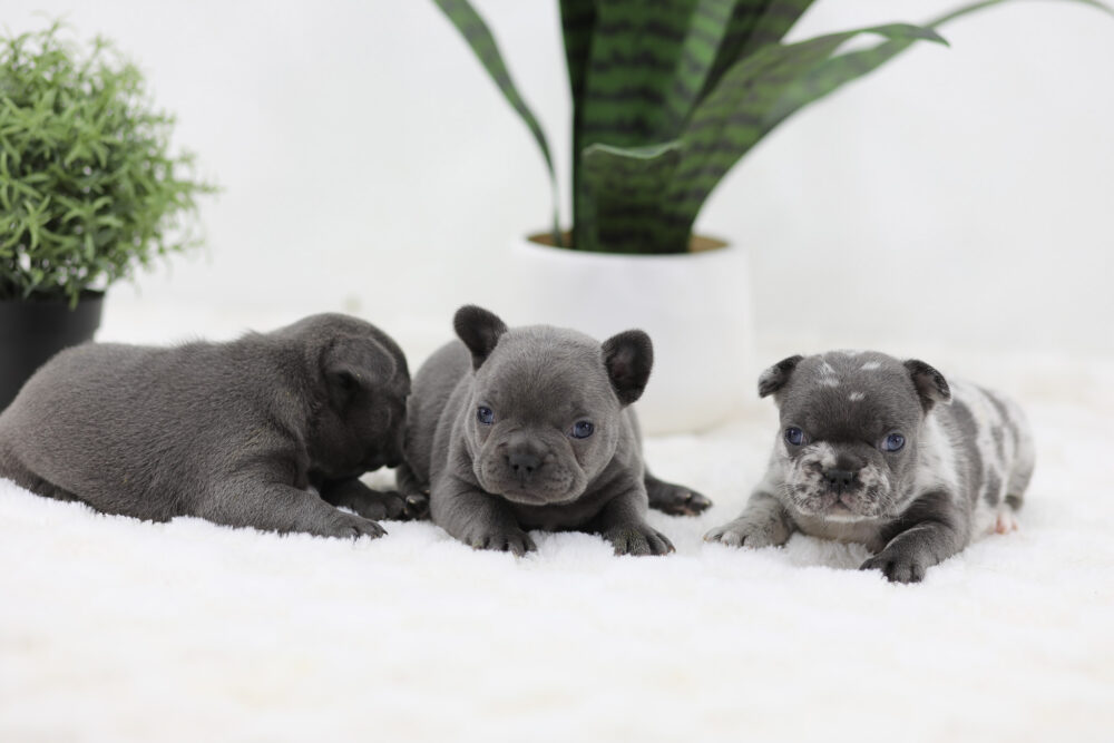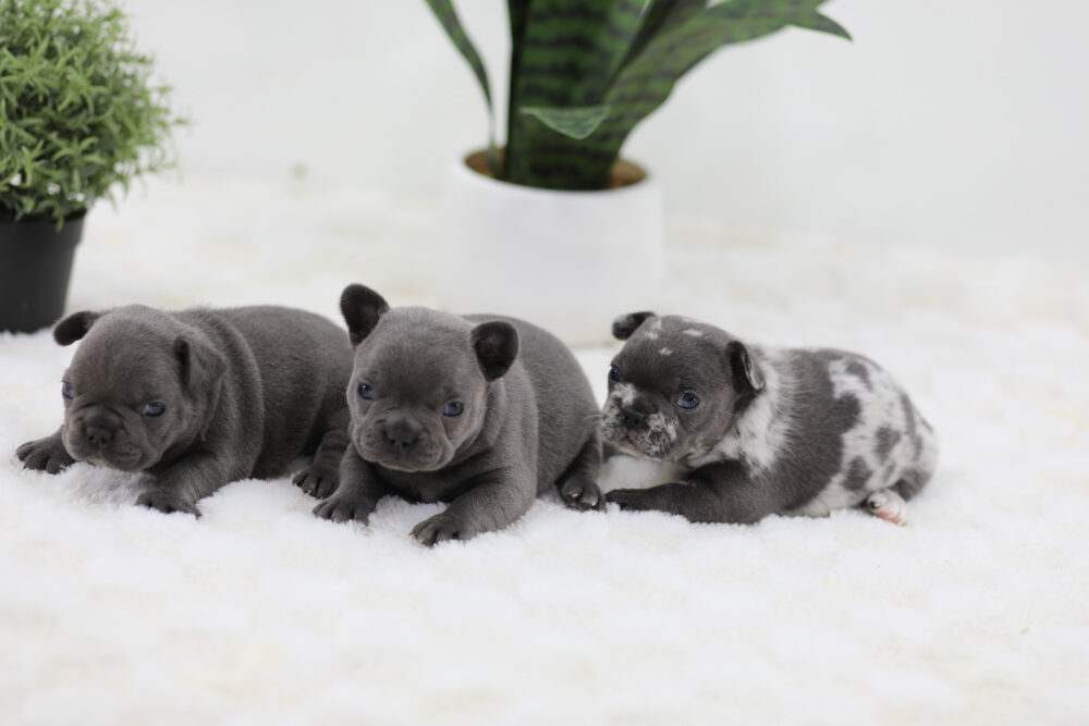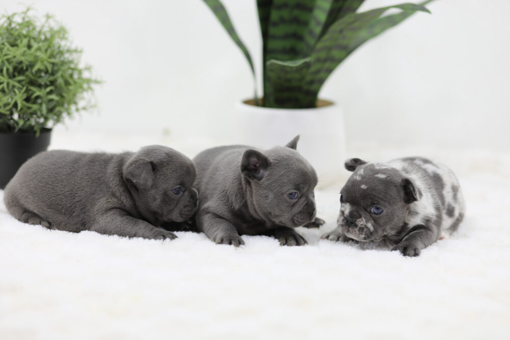Their father Raleigh is a handsome Blue Merle with a gorgeous coat and a personable nature. He is genetically tested. Their mother Lucie is a beautiful Frenchie with a loving personality. Both parents are here on the premises.