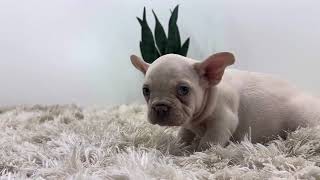 Her sire Chico is a handsome lilac and tan merle Frenchie with a personable nature. Her mother Ruby is a pretty platinum-white Frenchie with a lovable personality. Both parents are genetically tested.
