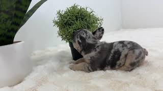 Ryder is a playful lilac merle French Bulldog with a coat that looks like it was painted by magic—swirls of silvery lilac and soft merle spots make him truly one of a kind. Always on the move and full of mischief, Ryder is the king of zoomies and a master of making you laugh. Whether he’s chasing his favorite toy or rolling around in pure joy, his fun-loving energy is absolutely contagious. With Ryder around, every day feels like playtime!
