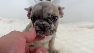 Her sire Chico is a handsome lilac and tan merle Frenchie with a personable nature. Her mother Heather is a pretty merle Frenchie with a lovable personality.